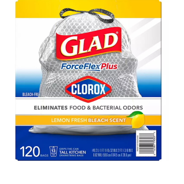 Glad ForceFlex Plus Tall Kitchen Trash Bags �C With Clorox, Lemon Fresh Bleach Scent (13 gal. 120 ct.)