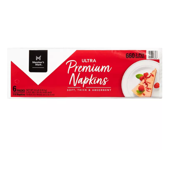 Original price was: $44.96.$11.24Current price is: $11.24.Member’s Mark Premium White 2-Ply Napkins, 13″ x 12.7″ (110 ct./pk., 6 pk)