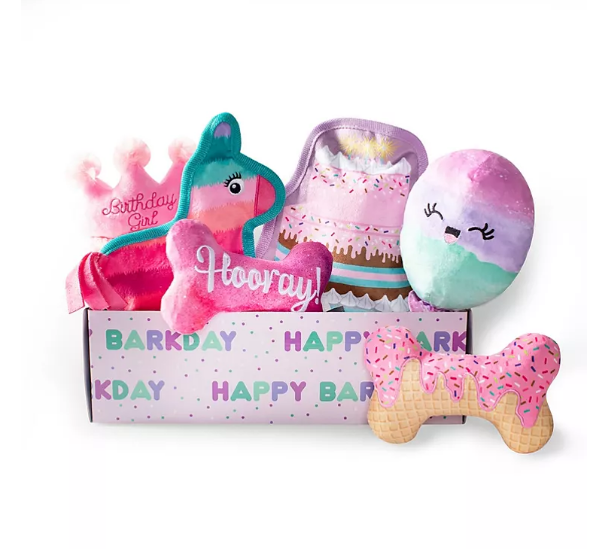 Happy Barkday Birthday Girl Box Dog Toy Bundle, 6-Piece Set (Pink)