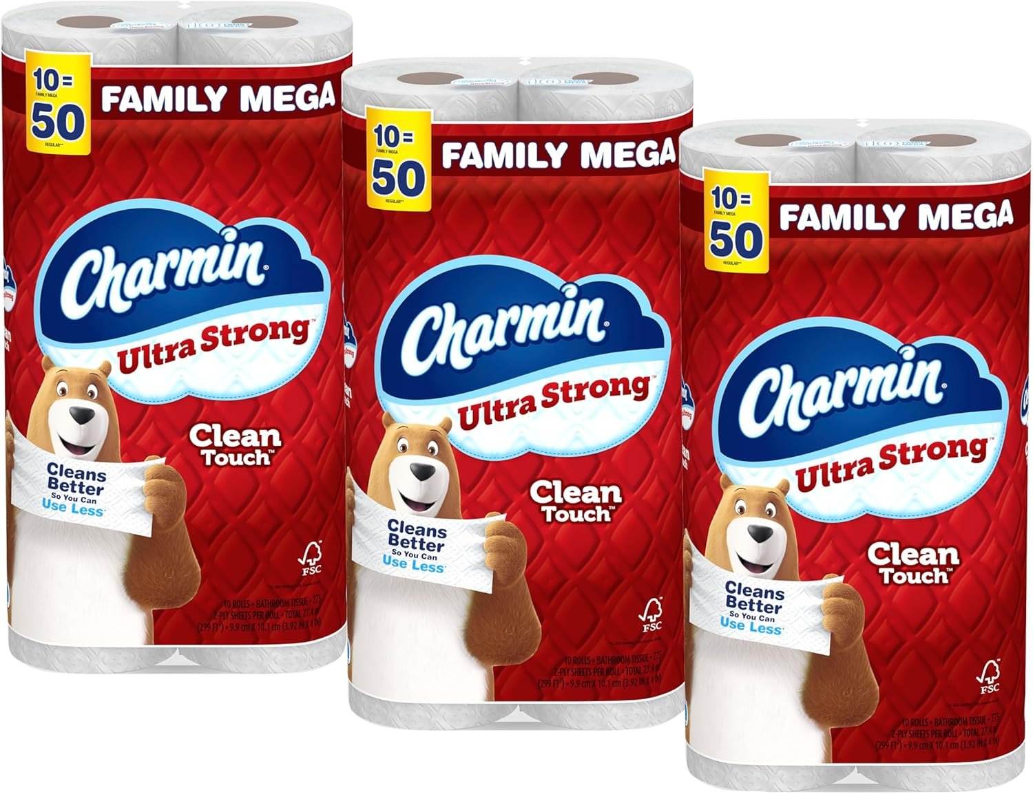 We designed Charmin Clean Touch Family Mega Roll with a unique diamond weave texture to leave you with an even cleaner touch than flat textured toilet paper could. Enjoy a confident Charmin clean every time!