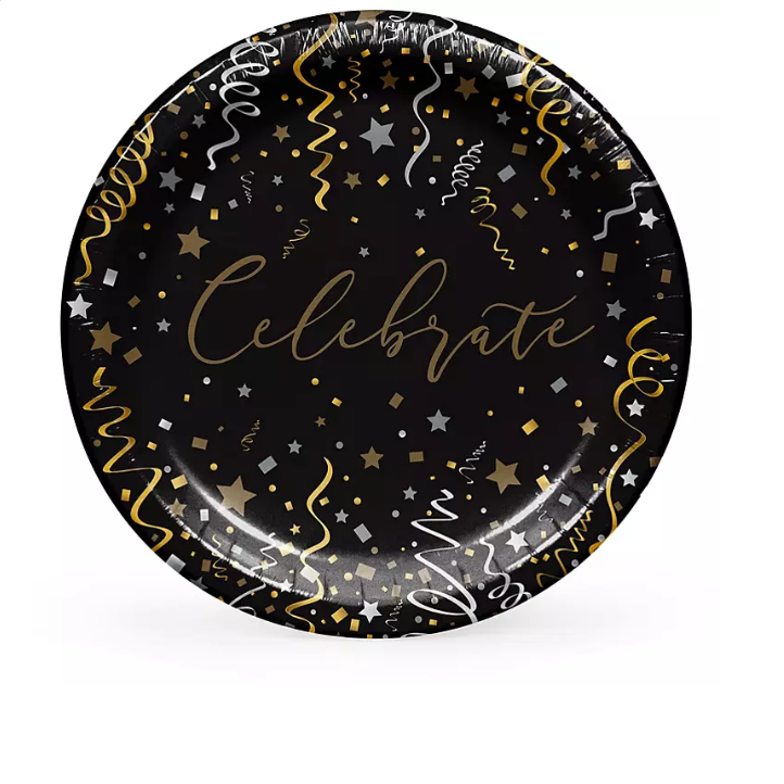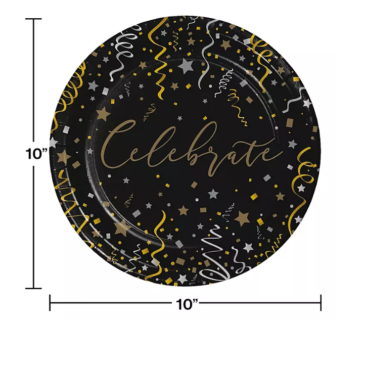 Whether you are celebrating New Years, a birthday, retirement or other big events, these paper plates make for festive tabletops. Measuring 10″ and packed in counts of 85, these plates are perfect for larger gatherings and make cleanup simple. Try pairing with silver, gold or black balloons, banners, streamers or other decorations for a seamless display for the big night. Whether you are celebrating out on the town or at home, these paper plates are a must for your celebration. Grab these disposable tableware items for your event today!
