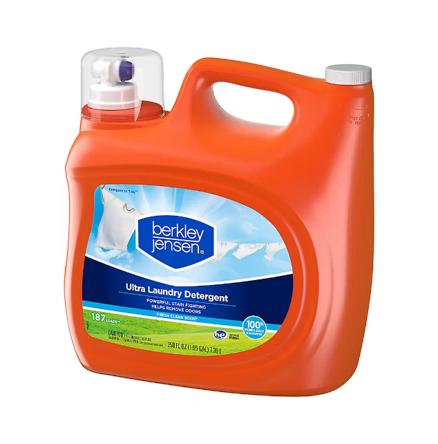 Berkley Jensen Ultra Liquid Laundry Detergent, now with more stain-fighting per bottle, is developed with Stain Fighting technology to fight even the toughest stains in any water temperature. The powerful formula with stain lifting enzymes fights tough dirt and stains and helps prevent them from re-depositing to the fabric of your clothes. The great value 250 fl. oz. bottle brightens and whitens with a fresh clean scent on up to 187 loads of laundry.