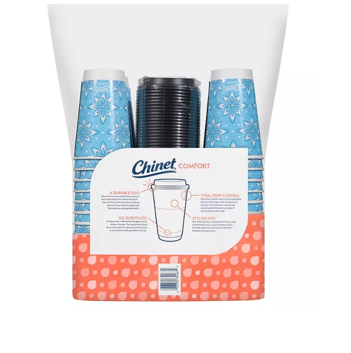 Chinet??Comfort Cup? ?16 oz. Hot Cups and Lids (70 ct.) is a product that is aptly named. The cups are manufactured with double layers of insulation designed to keep your hot drink at the right temperature while keeping your hand cool and comfortable. The included cups and lids are two times stronger than before and make it convenient to make yourself a to-go cup at home for the drive to work. Why spend money on a coffee at one of the many specialty coffee shops when you can make the entire week’s coffee at home for less than one cup at the boutique store?