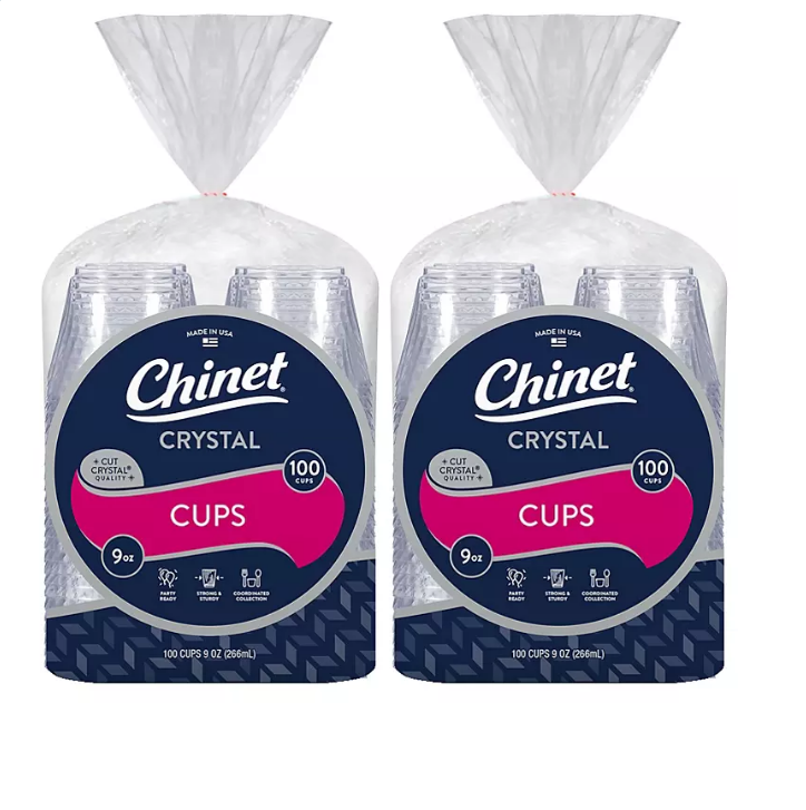 At the Chinet? brand, we believe it is good to get together. Our Chinet Cut Crystal Cups, 9 oz. (100 cups/pk., 2 pk.) are dance floor-friendly, pool-ready and dinner party-approved so you can keep broken glass from breaking up a good time. This elegant plastic cup glistens like real glass with no shattering, smashing or shocking spills.