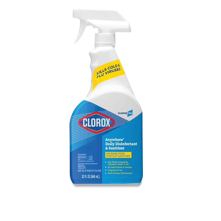 Anyone who needs the abilities of a strong disinfectant that is as gentle as water. This cleansing and sanitizing 2-in-1 powerhouse is manufactured by Clorox Commercial Solutions?, making it perfect for professional kitchens, office breakrooms, schools and more. Clorox Anywhere Hard Surface Daily Sanitizing Spray is the perfect solution for use in public spaces and helps eliminate the spread of germs. It’s also a popular choice in homes across the country and can help you keep your surfaces and small items, like kids’ toys, light switches, landline phones, chairs, bathroom fixtures and cutting boards, clean and free of harmful bacteria.