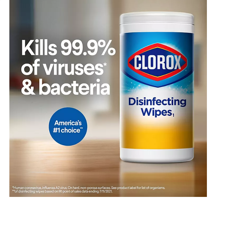 Disinfecting Wipes clean and disinfect with antibacterial power that kills 99.9% of viruses and bacteria that can live on surfaces up to 48 hours, including staph, E. coli, MRSA, salmonella, strep and Kleb. Clorox Disinfecting Wipes kills Covid-19 (SARS-CoV-2) in 30 seconds.?