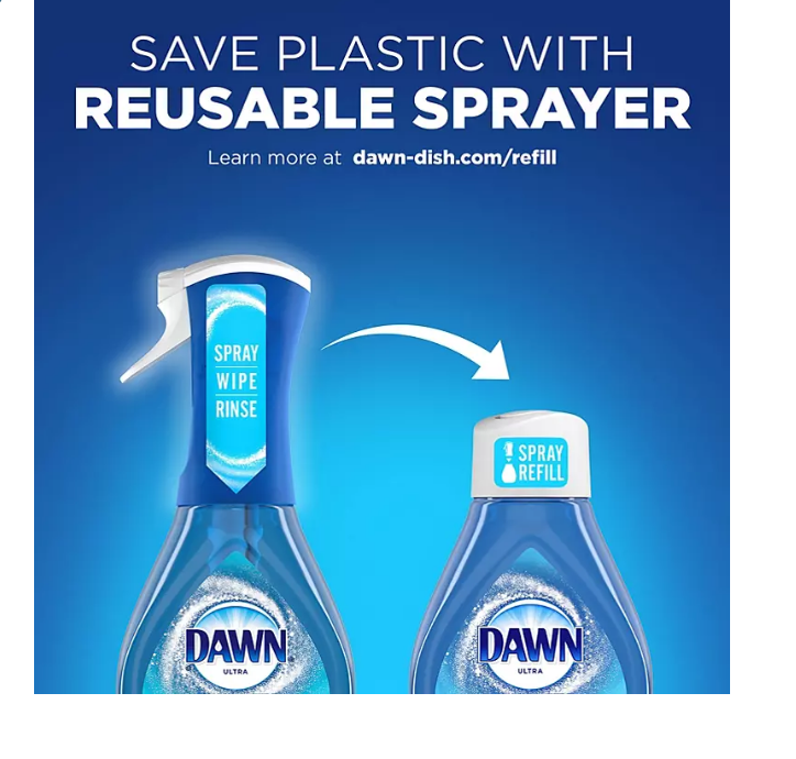 When you’re done with one bottle, just twist off the spray nozzle and twist it onto a refill bottle. Dawn Powerwash Dish Spray really does make everything easier.