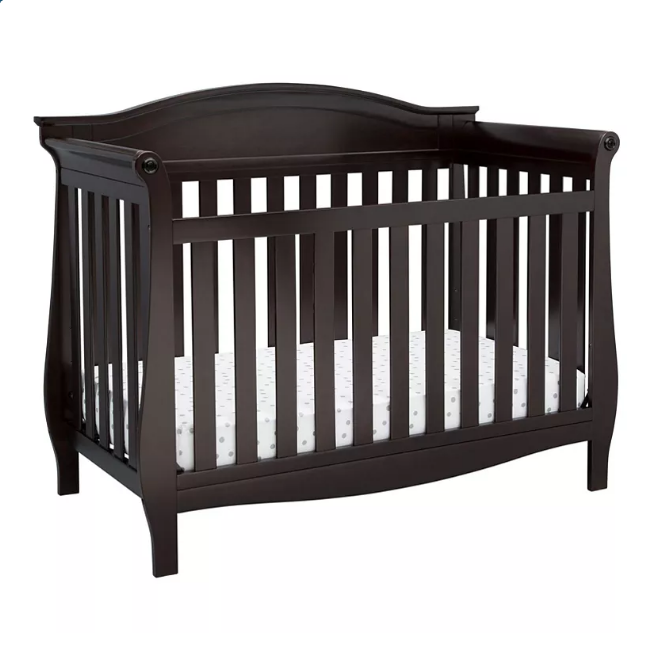 Welcome Baby home with the Lancaster 4-in-1 Convertible Baby Crib from Delta Children-rolled arms with a decorative rosette accent and sleigh-style silhouette make this classic crib a timeless choice. Designed to grow with your little one, this baby crib features three mattress heights that allow you to lower the crib mattress as your child begins standing.