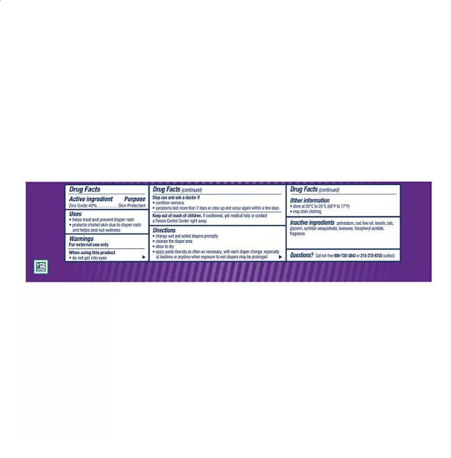 • Inactive Ingredients: Petrolatum, Cod Liver Oil, Lanolin, Glycerin, Beeswax, Sorbitan Sesquioleate, Fragrance, Pentaerythrityl Tetra-di-t-butyl Hydroxyhydrocinnamate, Tocopheryl Acetate, Talc