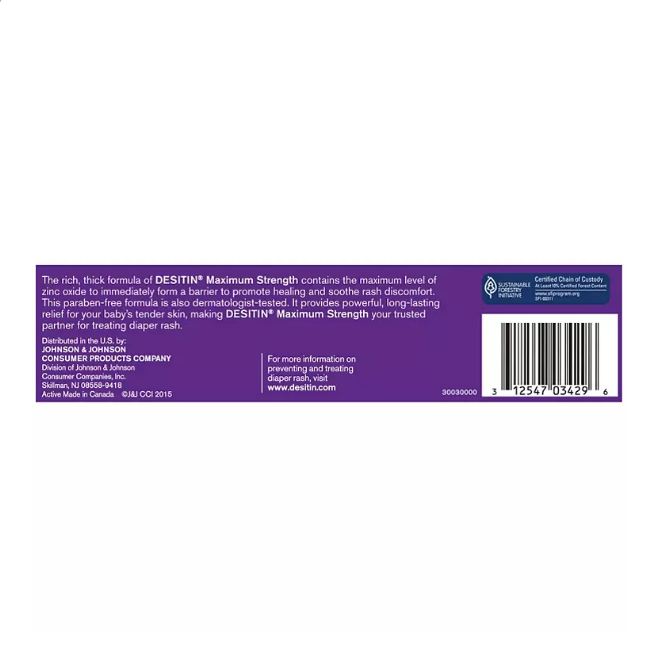 The #1 choice of pediatricians and parents, DESITIN? Maximum Strength Diaper Rash Paste works to effectively treat and help prevent diaper rash discomfort. Made with 40% maximum-level zinc oxide, this rich, thick diaper rash cream soothes and relieves on contact by sealing out wetness and protecting chafed skin due to diaper rash. Dermatologist- and pediatrician-tested, it is clinically shown to protect baby’s delicate skin for 12 hours. The hypoallergenic formula of this diaper rash treatment is gentle enough for daily use and is free of parabens, phthalates, dyes, and soap. DESITIN? Maximum Strength Diaper Rash Paste provides 5-in-1 action to treat, heal, protect, soothe and prevent diaper rash, for healing you can see and relief your baby can feel.