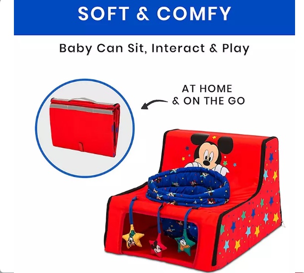 The Disney Mickey Mouse Sit ‘N’ Play Portable Activity Seat by Delta Children will encourage baby to sit, interact and play, at home and on the go. The supportive upright seat allows your baby to see and interact with the world in absolute comfort.