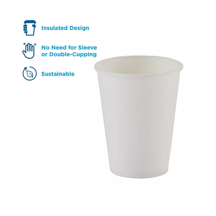 The patented paper process creates a specially insulated cup and eliminates need for costly double-cupping. Cup design provides comfortable, secure feel and non-slip hold. Contains no polystyrene foam. Convenient for both hot and cold beverage service.The Dixie? PerfecTouch? Insulated Paper Hot Cup is available in multiple pack (500 count to 1,000 count), cup sizes (12 oz. to 20 oz. cups), and color (White).