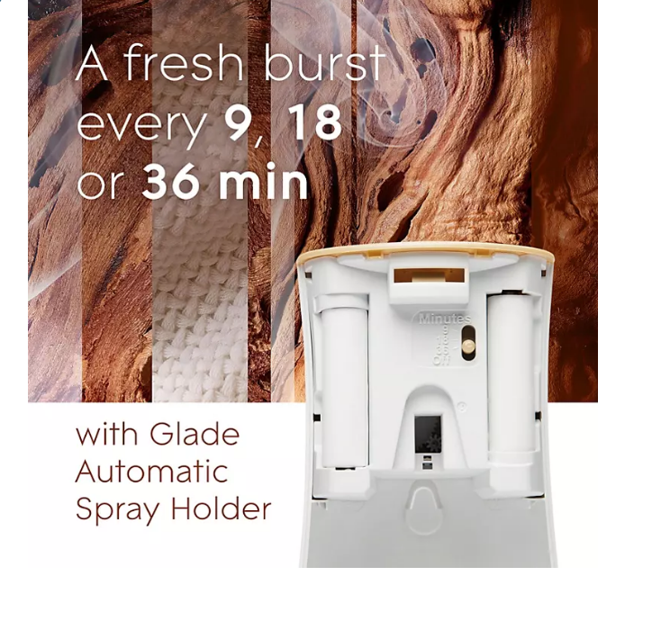 When your home can use a burst of freshness, the Glade??Automatic Spray Air Freshener Refill can lighten the air and take away existing odors. The sprays are operated by battery and offer time-released fragrance to keep your home fresh at all times. Glade spray also offers a boost button so you can instantly have a dash of fragrance in whatever room it is needed.