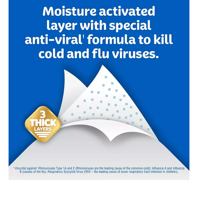 - Kleenex Anti-Viral tissue has a specially treated middle layer that wipes out cold and flu viruses in the tissue.?
