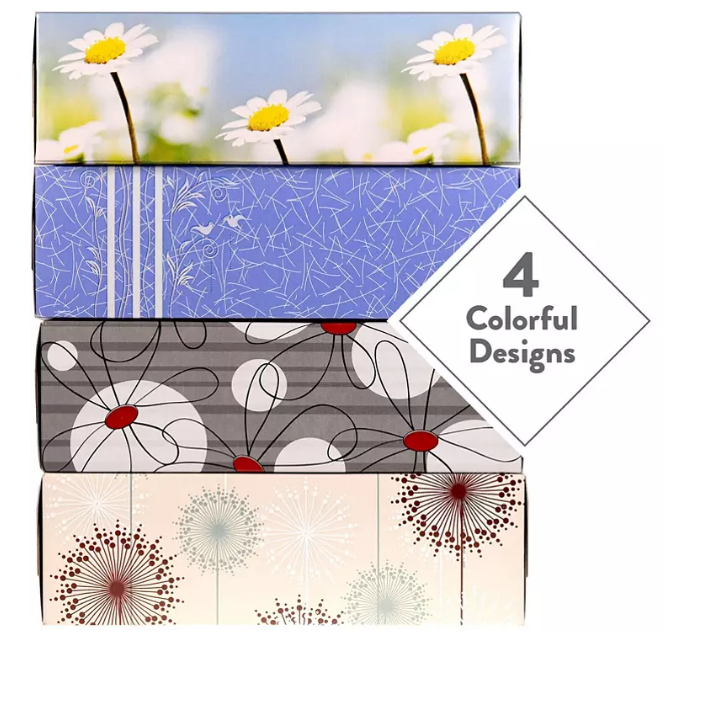 - Over 4,600 premium 2-ply tissues in 42 decorative boxes