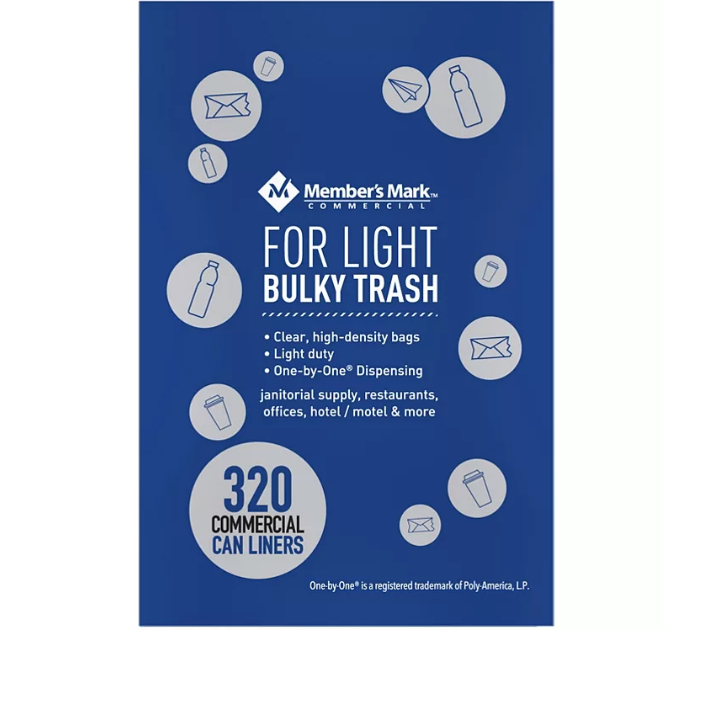 Make disposing of garbage a simple task with these Member’s Mark? 33-Gallon Commercial Trash Bags (320 ct.). They’re terrific for residential spaces, schools, hotels, offices and other businesses. These commercial trash can liners are designed for lightweight, bulky trash.?