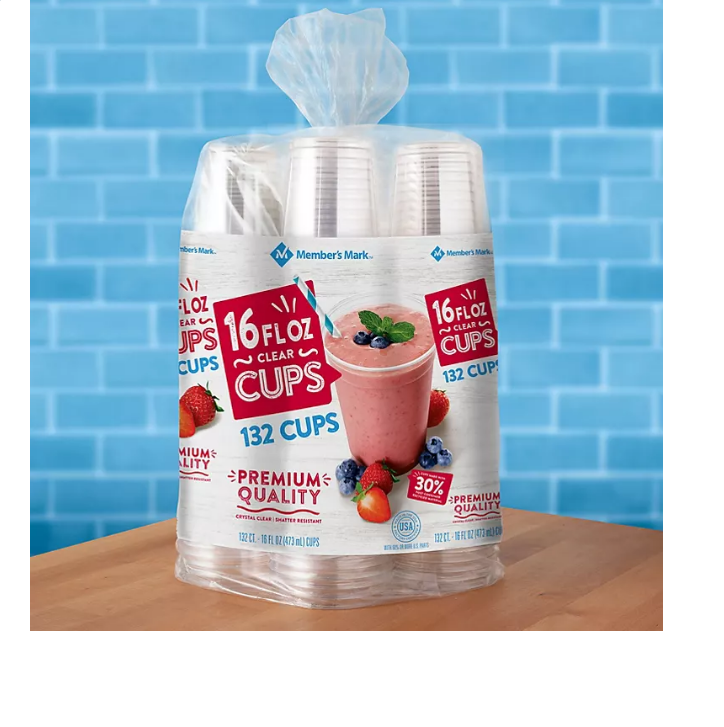 Member’s Mark Clear Plastic Cups, 16 oz. (132 ct.)