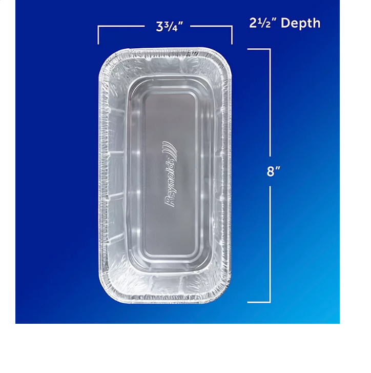 Reynolds Kitchens Aluminum Foil Loaf Pans with Lids make baking your cakes, loaves, and other pastry treats fuss-free and easy to store. Each 3-3/4″ x 8″ aluminum loaf pan has a non-stick surface so you won’t need oil or spray to keep foods from sticking. Just pour the batter in and slide your loaf right out of the pan after cooling. A snug-fitting, clear lid is included for each pan and makes transportation and storing food easy. The clear lid comes in handy to easily see what food is stored inside.?