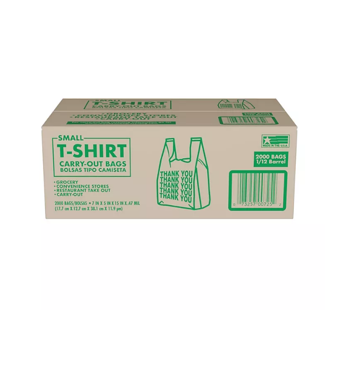 Small T-Shirt Carry-Out Bags. 7″ x 5″ x 15″ (2.000 ct.)