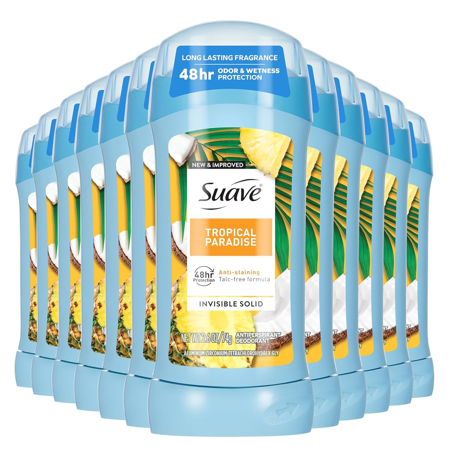 Suave Antiperspirant Deodorant For Women, Invisible, Underarm Deodorant, 48hr Odor & Wetness Protection, Long Lasting Tropical Fragrance, Sensitive Skin Deodorant Solid Stick, 2.6 oz (12 Bulk Pack)