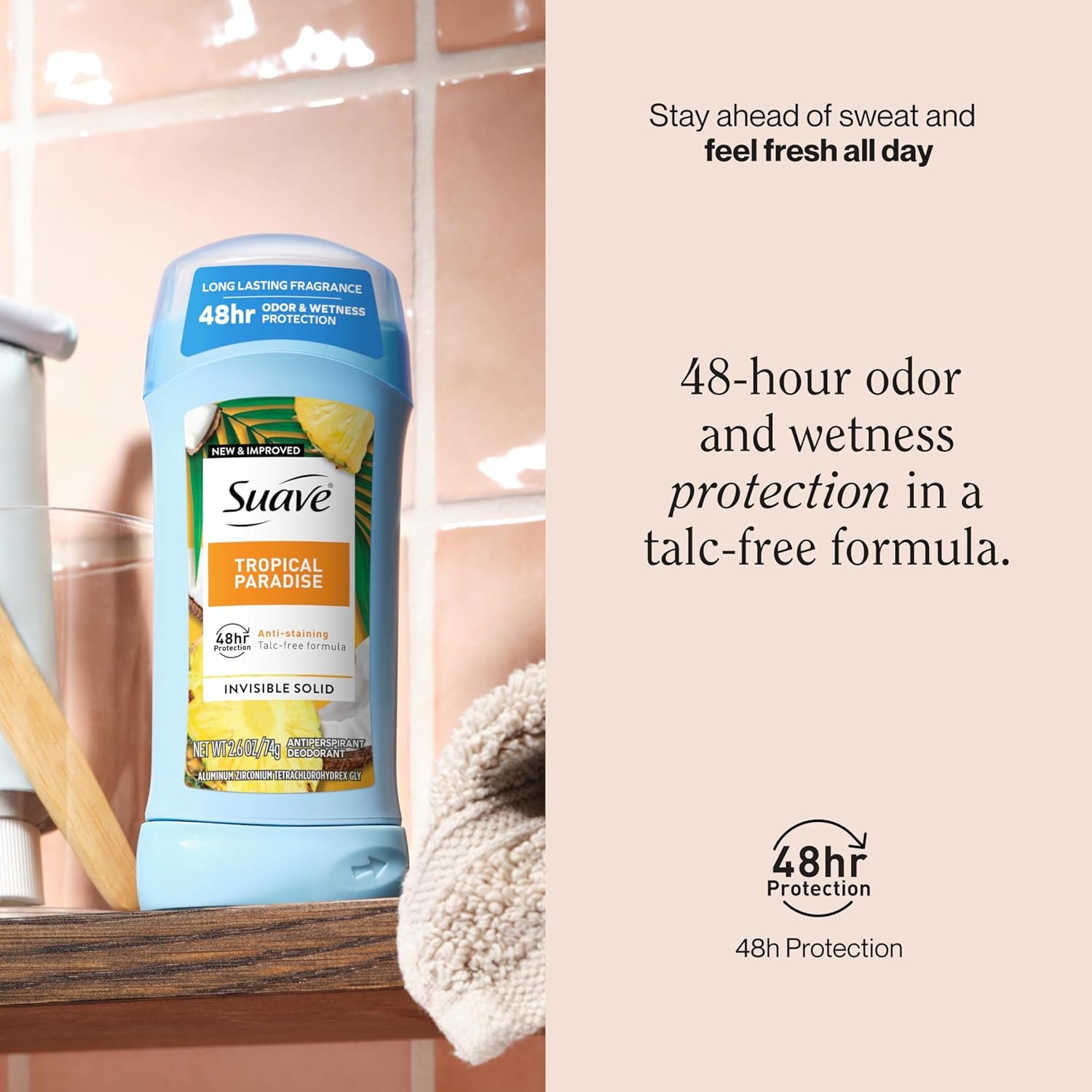 Deodorant texture, antiperspirant with 48hr protection against wetness & odor anti-stain, talc-free