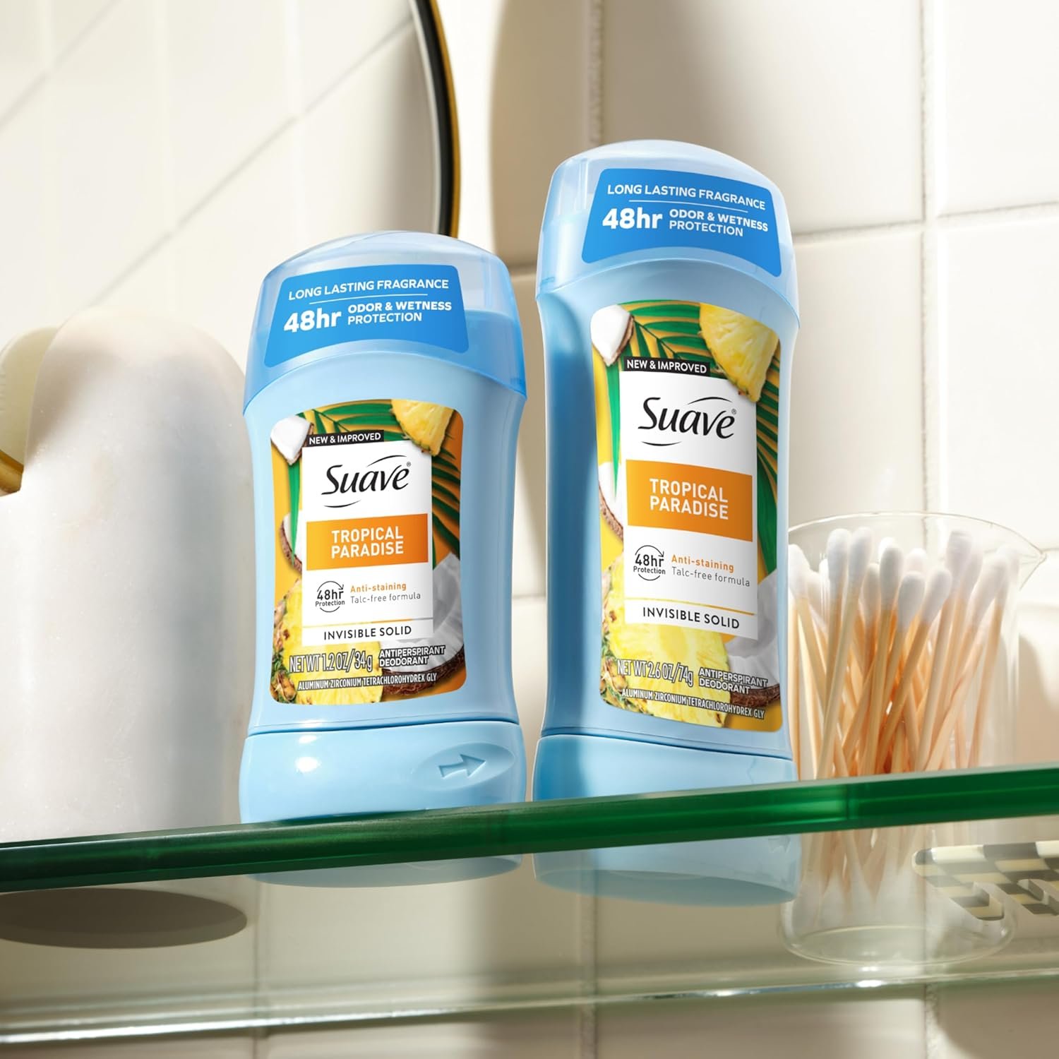 • LONG-LASTING FRAGRANCE: The long-lasting Suave Tropical Paradise fragrance keeps you feeling fresh all day with notes of peach, passion fruit, coconut, and vanilla and its 2.6 oz size is ideal for travel or on-the-go use, making it easy to keep this underarm deodorant handy wherever you are